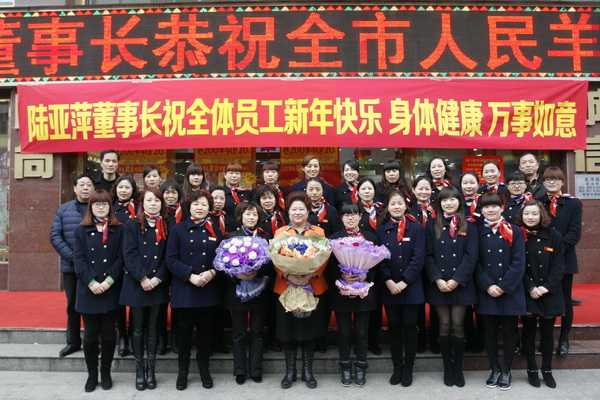 2015年春节陆亚萍董事长与海门亚萍国际员工合影留念